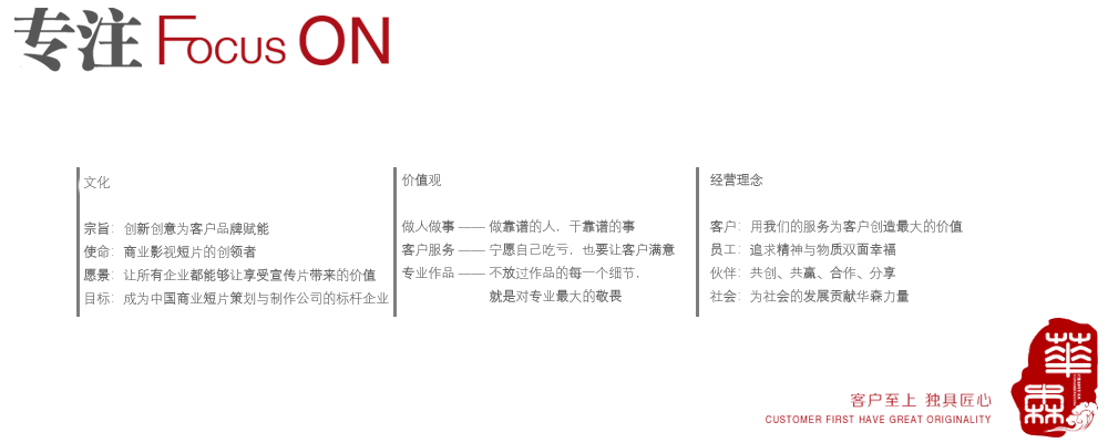 秉承“客戶為上”的原則,以市場為導向,以“視頻營銷戰略”為教程,讓每一部影片的作用發揮到極致。